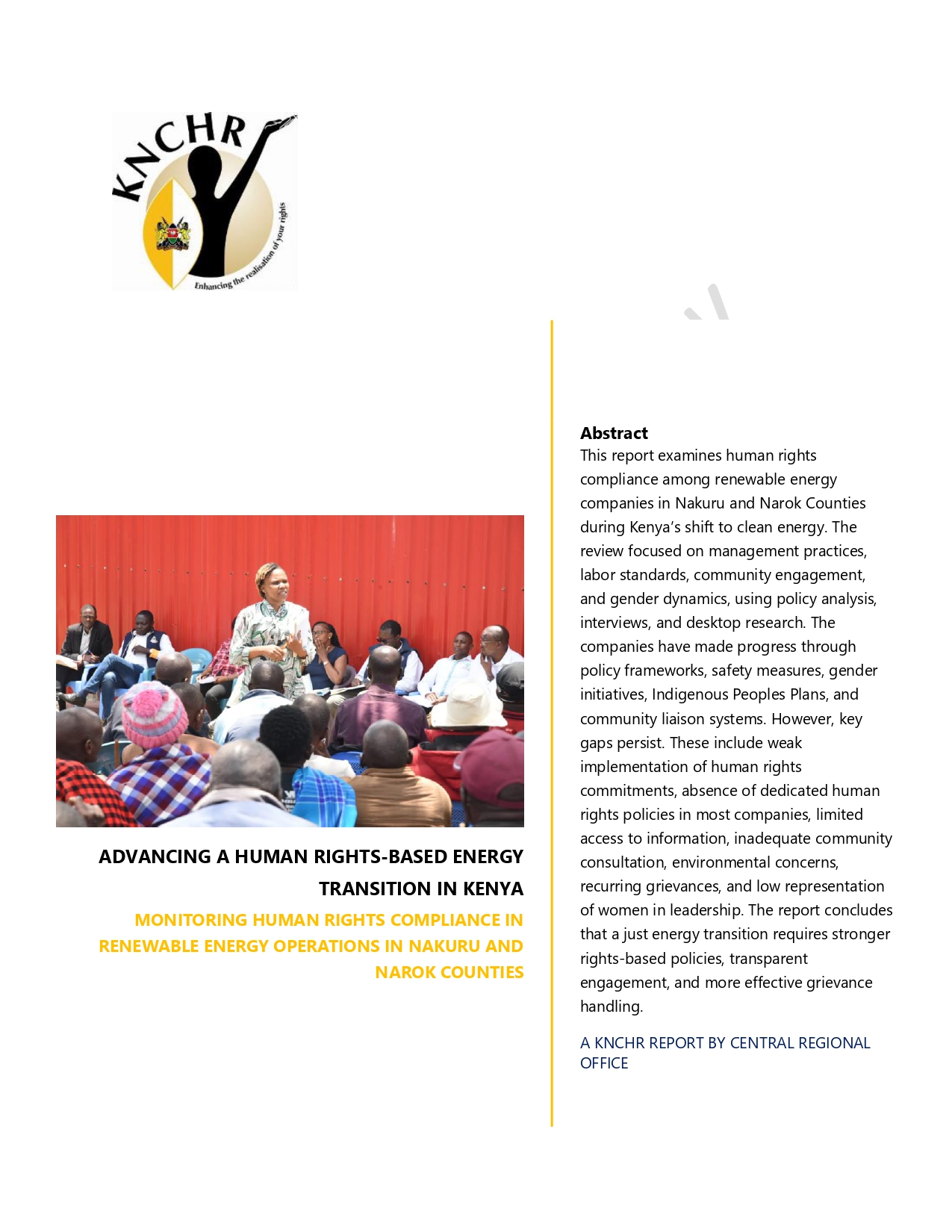 Advancing A Human Rights-Based Energy Transition In Kenya: Monitoring Human Rights Compliance In Renewable Energy Operations In Nakuru And Narok Counties