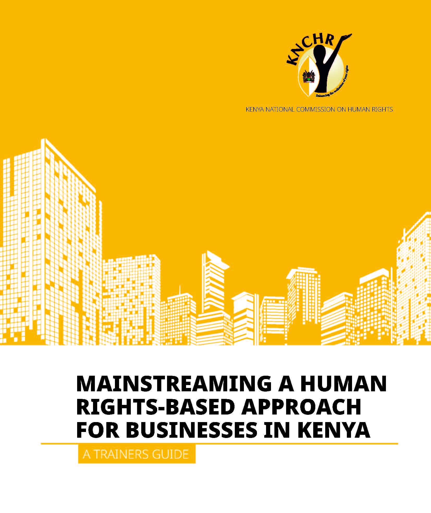 al Human Rights Institution, KNCHR continues to advocate for business respect for human rights in line with the UN Guiding Principles on Business and Human Rights and Kenya’s National Action Plan on Business and Human Rights.To promote the enjoyment of human rights for all, KNCHR particularly seeks to empower businesses to ensure their practice is in line with national, regional and international human rights standards. To integrate a Human Rights-Based Approach (HRBA) into business operations, it is imperative that all stakeholders are empowered through structured actions. The KNCHR has thus developed a Business and Human Rights Curriculum and the Business and Human Rights Trainers guide, as practical tools to help businesses and business relations to build their capacity to adopt responsible business practices.